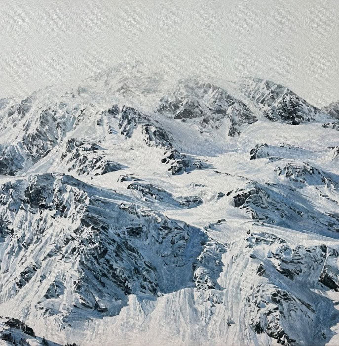 Surinyac's paintings, observed at a distance, offer us a realistic, almost photographic vision. However, when approaching, the piece opens and becomes an almost lyrical abstraction.