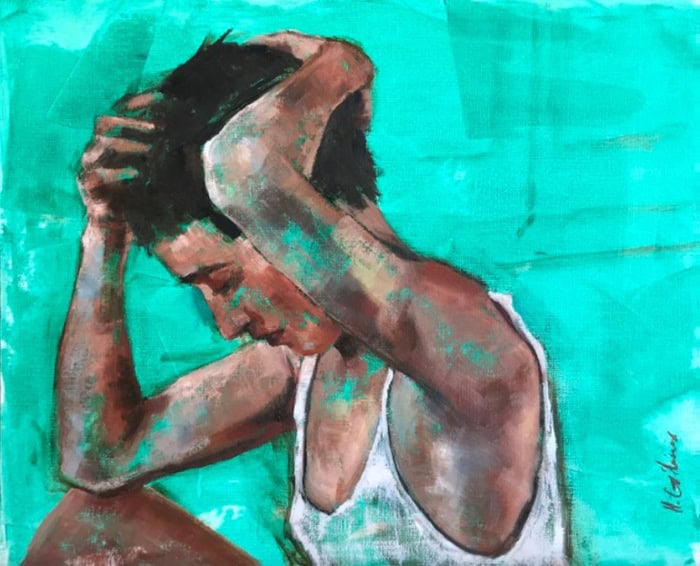 Més informació sobre l'obra Anna in blue de l'artista Hélène Gélinas al nostre Instagram @galeriaespaicavallers