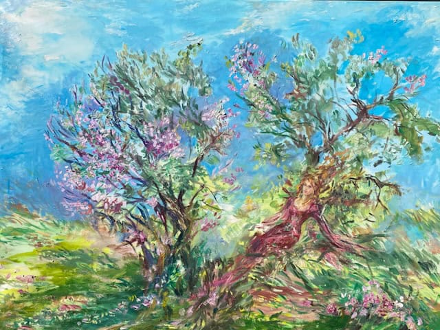 Més informació sobre l'obra Arbres florits de l'artista Rosa Agenjo a l'Instagram @galeriaespaicavallers