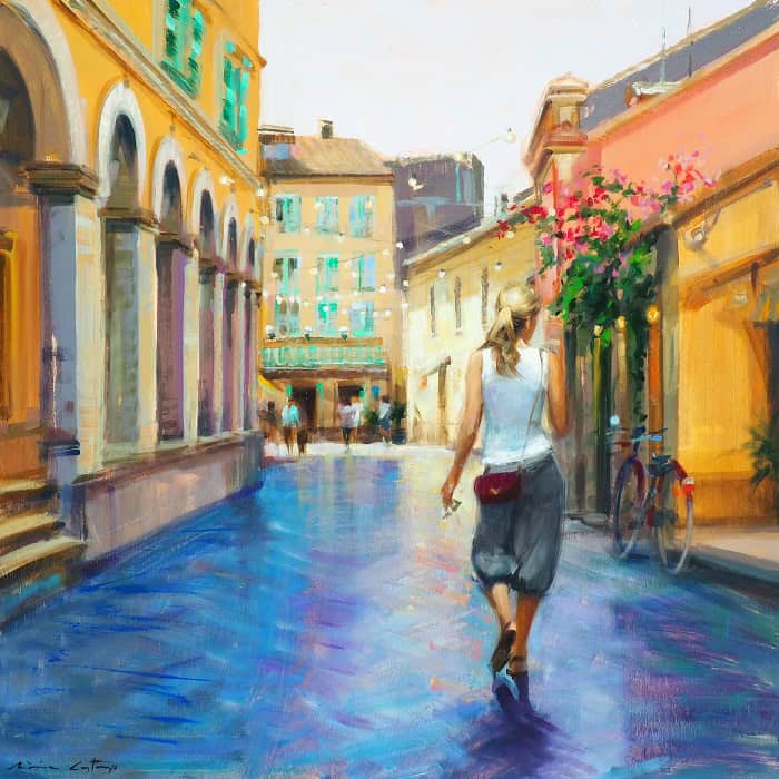 Més informació sobre l'obra First afternoon in Corfú de l'artista Mònica Castanys al nostre Instagram @galeriaespaicavallers