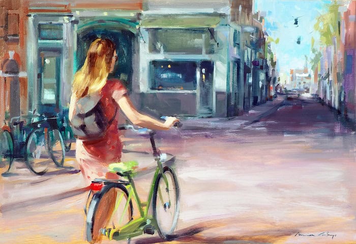 “M’apassiona la figura femenina i el seu context. M’obsessiona mirar i extreure dels moments la seva justa essència, buscant la bellesa d’aquests instants senzills. M’inspiro en escenes quotidianes. Sempre he pensat que el procés és important perquè d’una manera o altra forma part de el resultat final. Els contrastos i la llum són la base de la meva pintura. Treball amb oli sobre fusta perquè aquesta base em permet explorar diferents tècniques al llarg de el procés creatiu, durant aquest camí és on em sento més còmoda. “