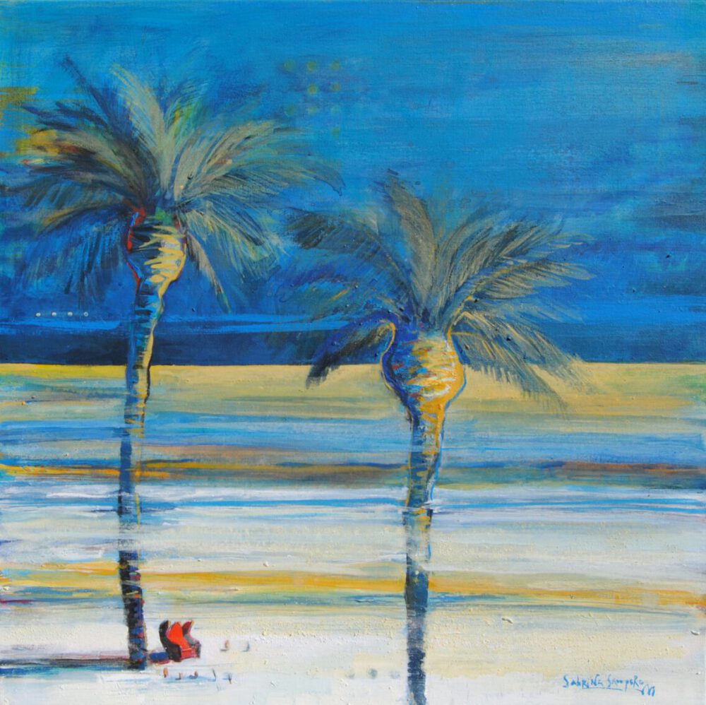 Les obres de Sabrina Sampere són una exploració profunda i poètica del paisatge, on les palmeres ocupen un paper central. En els seus quadres, aquestes es presenten tan solitàries com en grup, simbolitzant una gamma de situacions emocionals i existencials. La seva paleta de colors vibrants captura l’essència de la natura, creant atmosferes que conviden a la reflexió i a la contemplació.